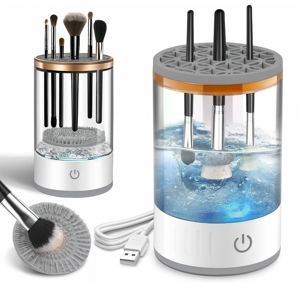 Mantén tus brochas siempre limpias con este limpiador eléctrico que lava y remueve residuos en minutos. Cuenta con depósito transparente, ranuras para diferentes tamaños, almohadilla de silicona y carga USB. Práctico, rápido y perfecto para uso diario o profesional.